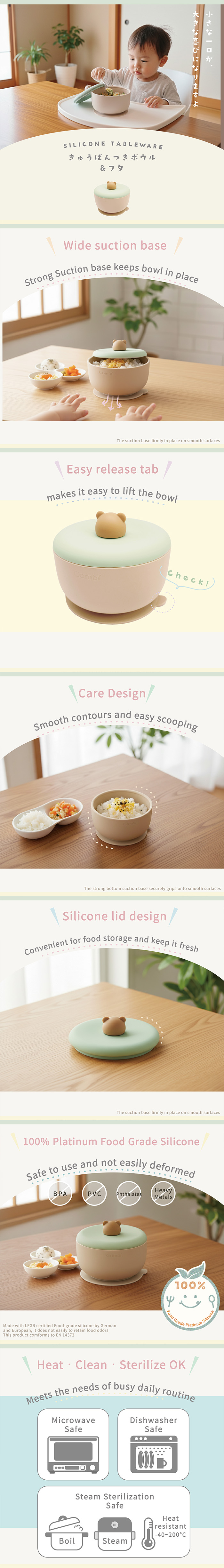 Silicone Divided Suction Bowl and Lid (Panda/Beige)